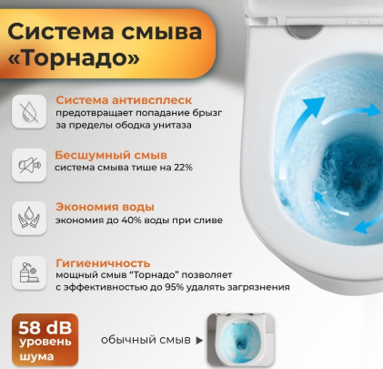 Круговой смыв - современный воронкообразный вид смыва, который позволяет обработать до 95% поверхности чаши унитаза.