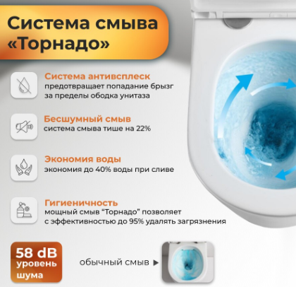 Модель изготовлена из прочного фаянса в матовом белом цвете, что придаёт интерьеру лаконичность. Чаша овальной формы с технологией воронки-водоворота гарантирует эффективный смыв. Унитаз оснащён сиденьем с микролифтом, которое плавно опускается без шума, и быстросъёмным механизмом для удобства обслуживания.