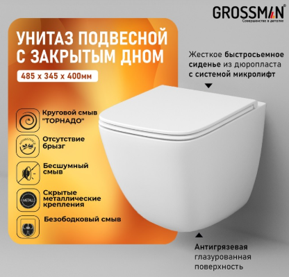 Унитаз подвесной безободковый с сиденьем микролифт GR-4497SQC Grossman в г.Челябинск