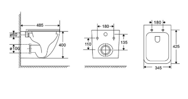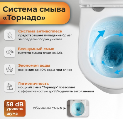 Форма воронки унитаза предотвращает образование брызг.