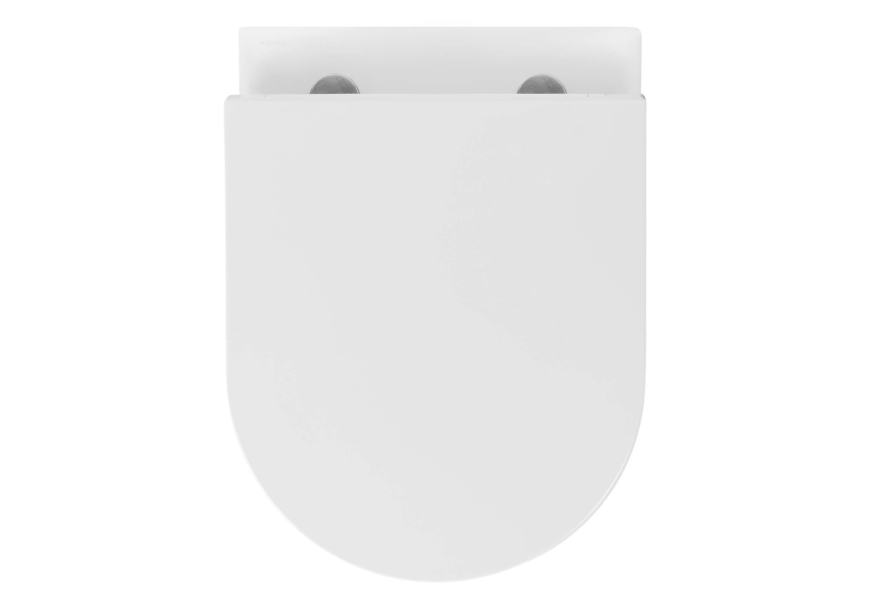 Ультратонкое сиденье из дюропласта устойчиво к царапинам, легко снимается для уборки одним нажатием кнопки. Механизм Soft Close обеспечивает плавное и бесшумное закрытие крышки унитаза, без лишних контактов и усилий.
