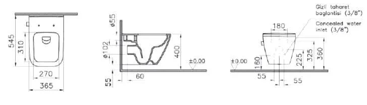 Унитаз Vitra Integra Square 7082B003-7209 подвесной с функцией биде и встроенным смесителем.