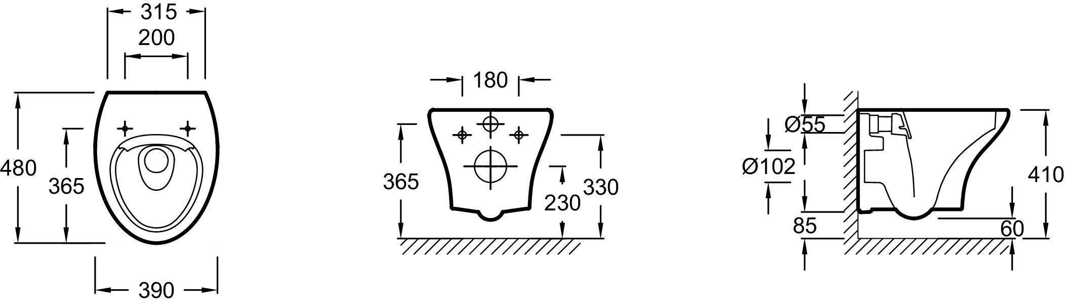 - Чаша подвесного унитаза компакт без обода, 48 x 39 см.