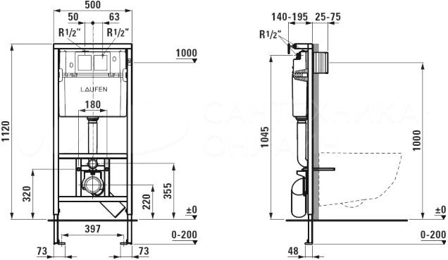 Унитаз подвесной ПЭК Pro Rimless + инсталляция+кнопак+сиденье 8.6996.6.000.000.R Laufen в г.Челябинск