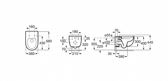 Купить Унитаз подвесной Roca 34624L000 560 rimless артикул: 204242 в интернет-магазине ESMAG - Челябинск.
