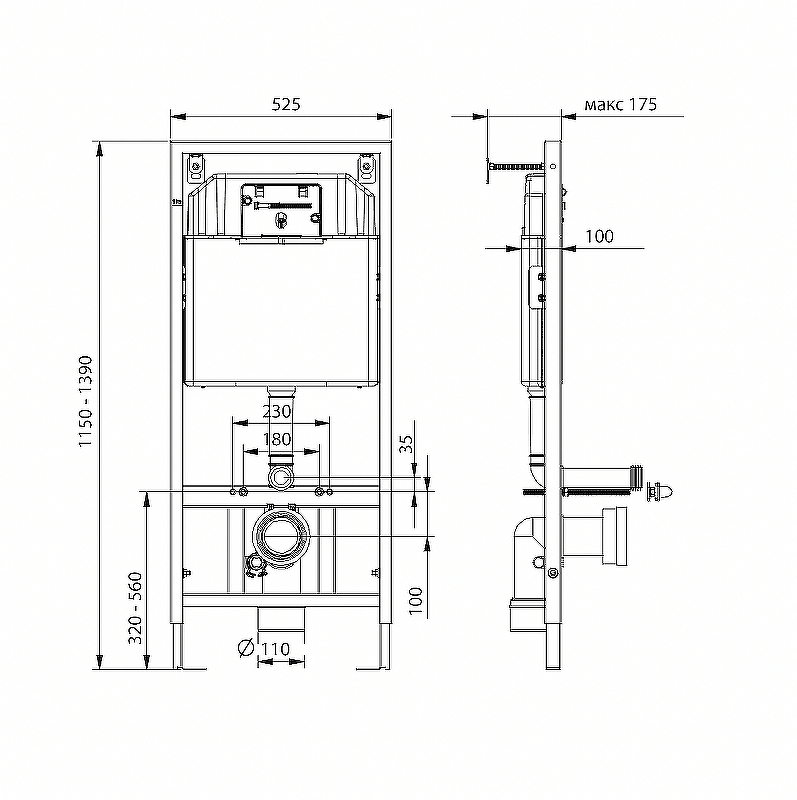 - Монтажная глубина от 100 мм до 175 мм, высота от 1150 -1390 мм.