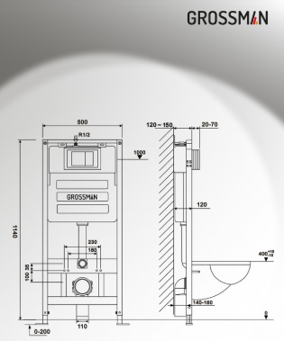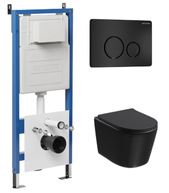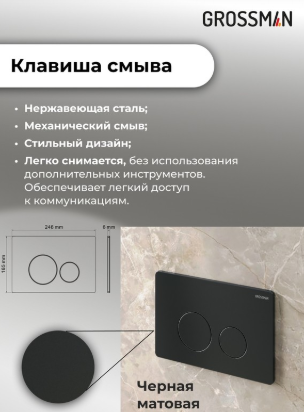 Унитаз Grossman Торнадо 97.4477BMSQ.05.21M с инсталляцией и черной матовой кнопкой смыва