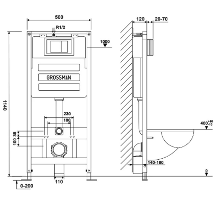 Унитаз с инсталляцией 97.4477BMSQ.05.42M GR-4477BMSQ Grossman
