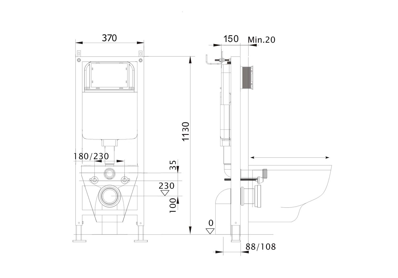 • Оцинкованные ножки с простой и бесступенчатой регулировкой до 20 см позволяют установить сантехнику на комфортной высоте
