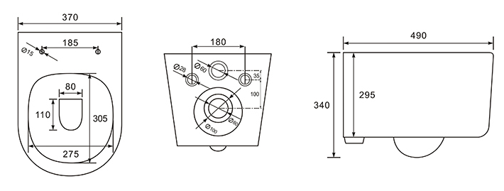 • Объем смывного бачка 6 л. Толщина бачка 10 см