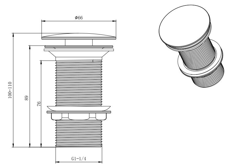 • система клик-клак, управляется нажатием на пробку слива