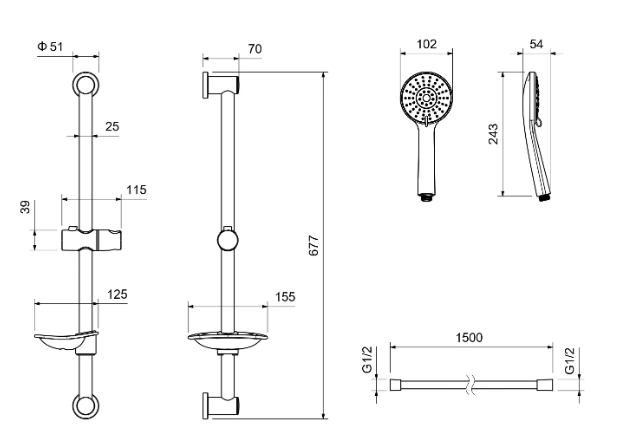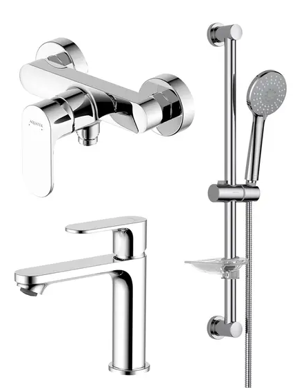 Комплект смесителей Альфа AQ1931CR Aquatek: смеситель для раковины + смеситель для душа + душевой гарнитур, материал латунь, цвет хром.