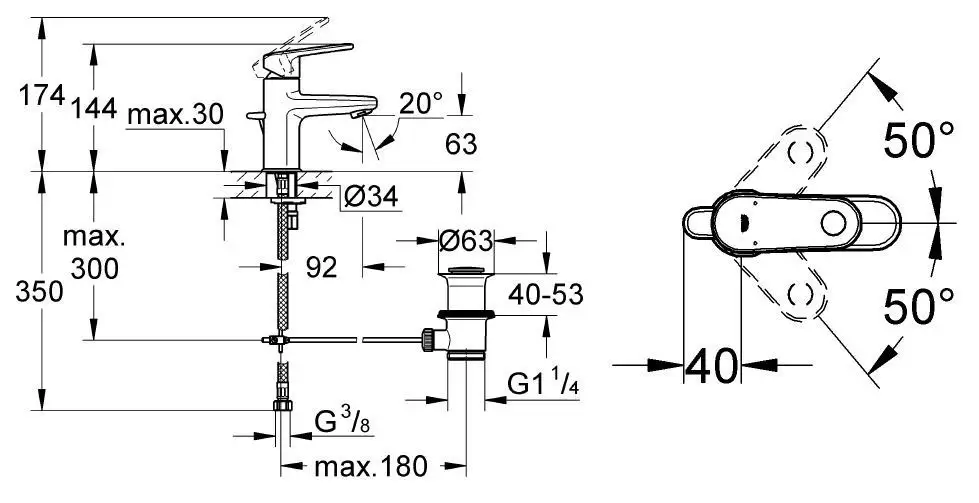 Смеситель для раковины, уменьшенный Europlus II 33156002 GROHE.