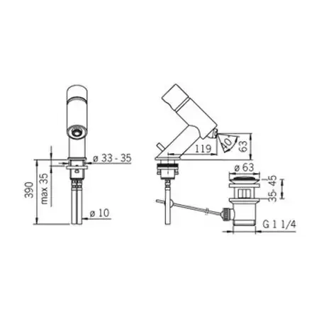 Cмеситель для биде Oras Alessi 8518 с донным клапаном и подводкой из медных трубок. Для удобства использования изделие оборудованно поворачиваемым аэратором.
