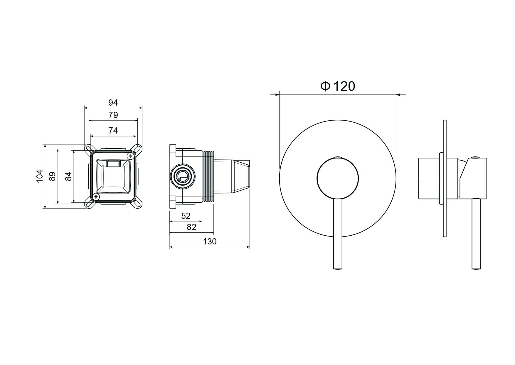 • Смеситель из латуни с установочной коробкой на 1 потребителя (внешняя и скрытая часть)