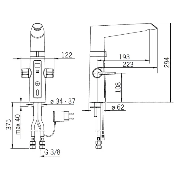 - диаметр подключения воды: G⅜, внутренняя резьба