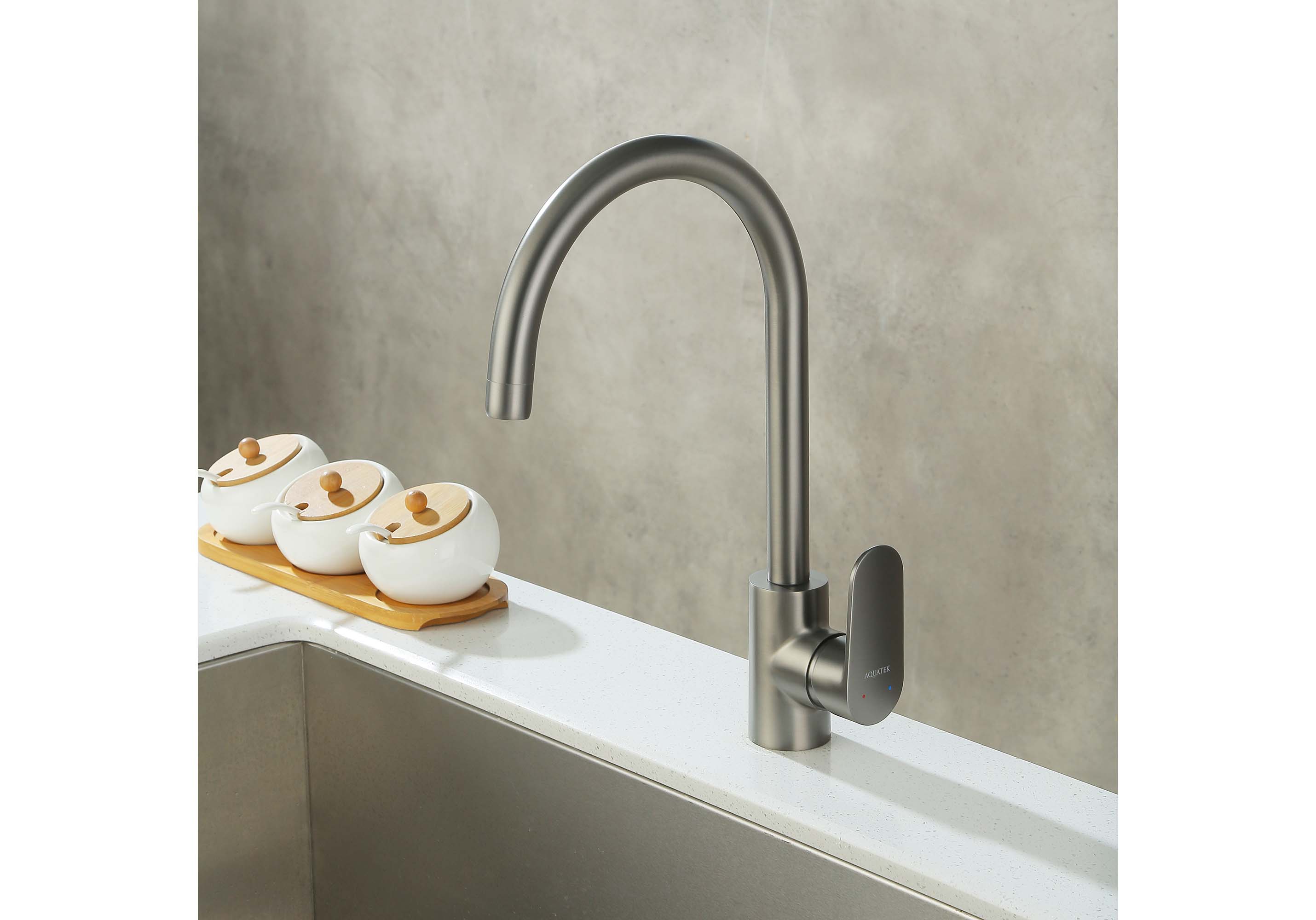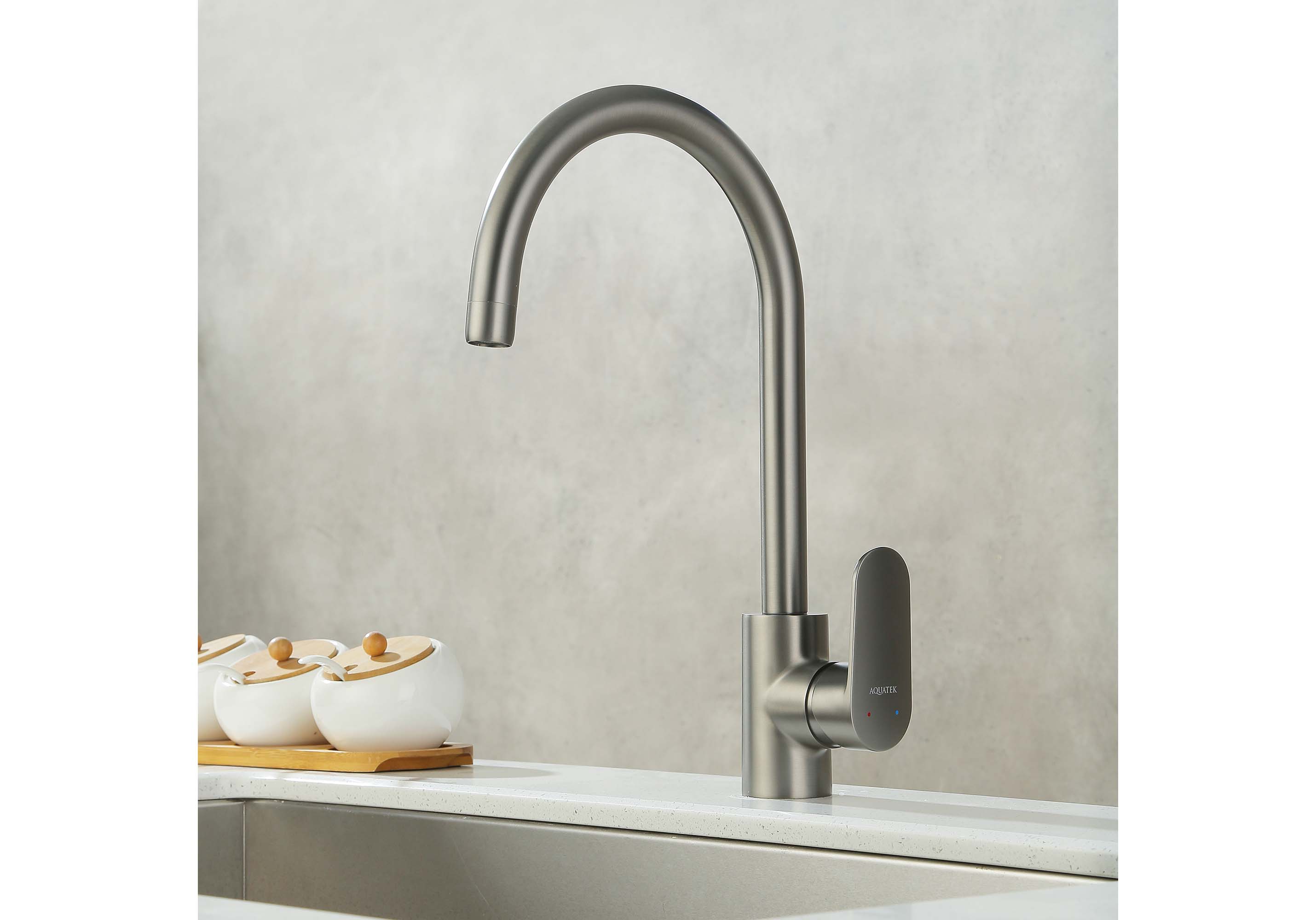 Купить Смеситель для кухни Ника AQ1882BGM оружейная сталь Aquatek артикул: 226049 в интернет-магазине ESMAG - Челябинск.