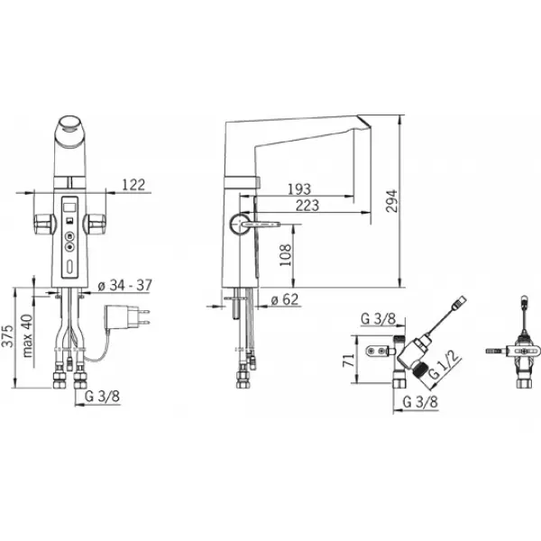 - диаметр подключения воды: G⅜, внутренняя резьба