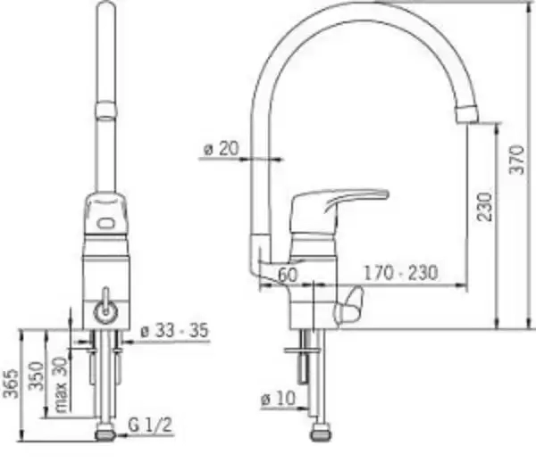 Смеситель специально разработан для установки с посудомоечной машиной. Он имеет дополнительную гибкую подводку G 1/2'', которая подключается к посудомоечной машине. Переключение потока воды от смесителя к посудомоечной ммашине обеспечивает клапан-переключатель.