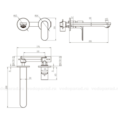• Смеситель (внешняя и скрытая часть)