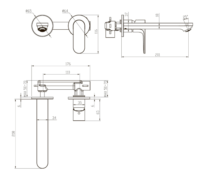 • Смеситель (внешняя и скрытая часть)