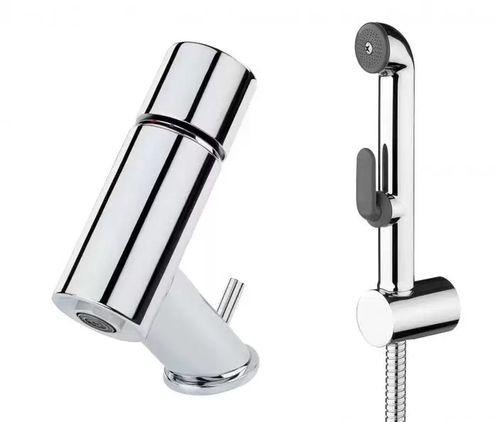 Хромированный смеситель для умывальника Oras Alessi 8502 с гигиенической лейкой, донным клапаном и подвдкой из медных трубок.