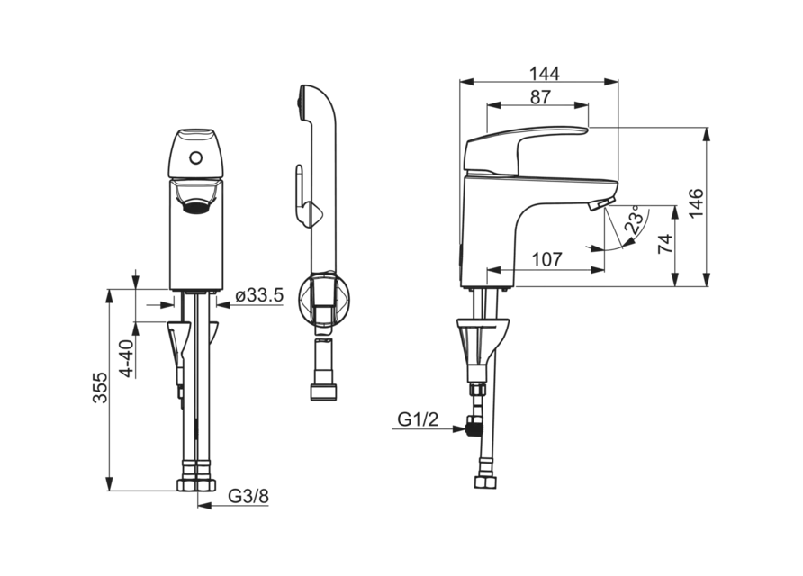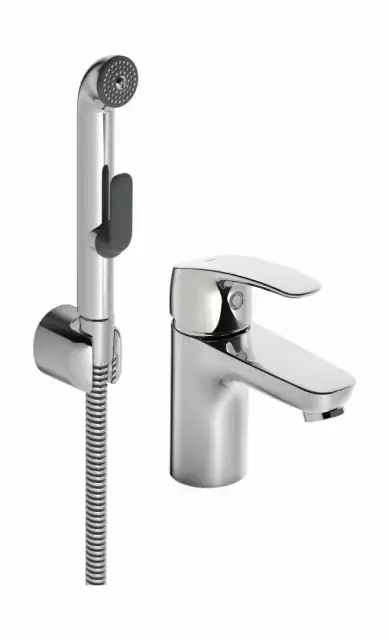 Смеситель для раковины Oras Safira 1012 с ручным душем Bidetta, также имеет прочную рукоятку и встроенные опции ограничения температуры и напора воды.