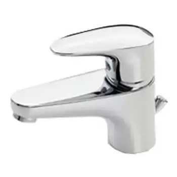 Cмеситель для умывальника Oras Vega 1800F с рычажным донным клапаном и прочной рукояткой, оснащенной эко-кнопкой для регулирования температуры и расходы воды.