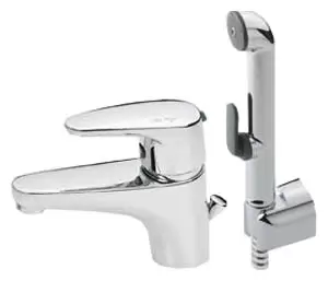 Смеситель для умывальника Vega 1802F ORAS с рычажным донным клапаном и ручным душем Bidetta- длина шланга 1,5 м.;- настенный держатель. Двухкомпонентная прочная рукоятка оснащена эко-кнопкой для ограничения температуры и расхода воды.