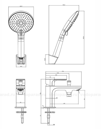 • Душевой гарнитур приобретается отдельно