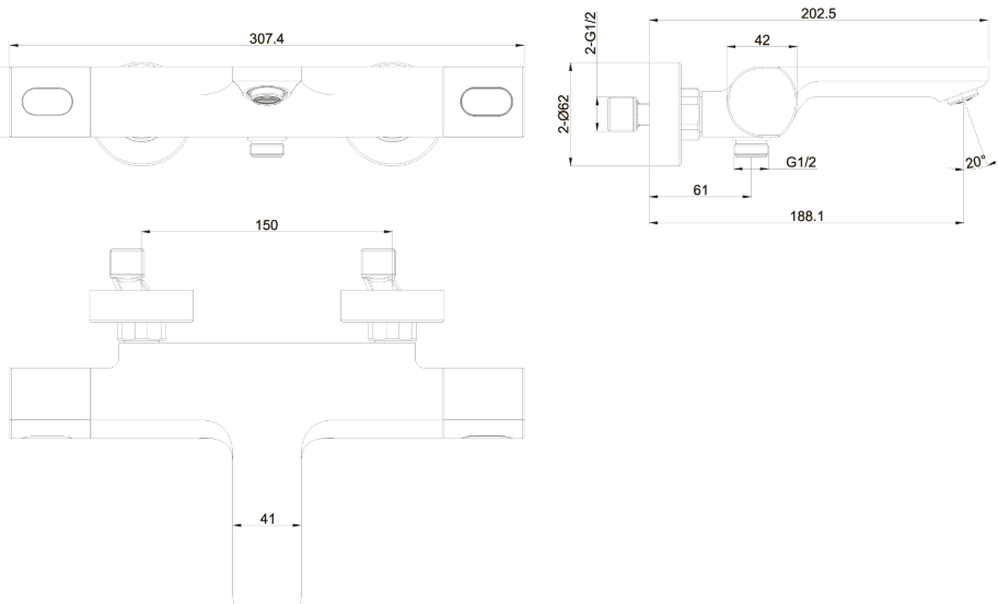 • двухрычажная система регулировки силы струи и температуры воды