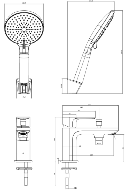 • Душевой гарнитур приобретается отдельно