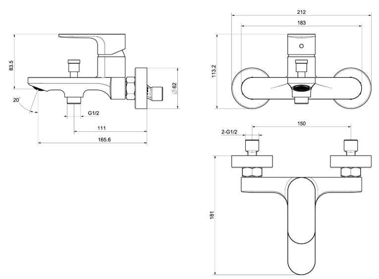 Межцентровое расстояние (мм): 150