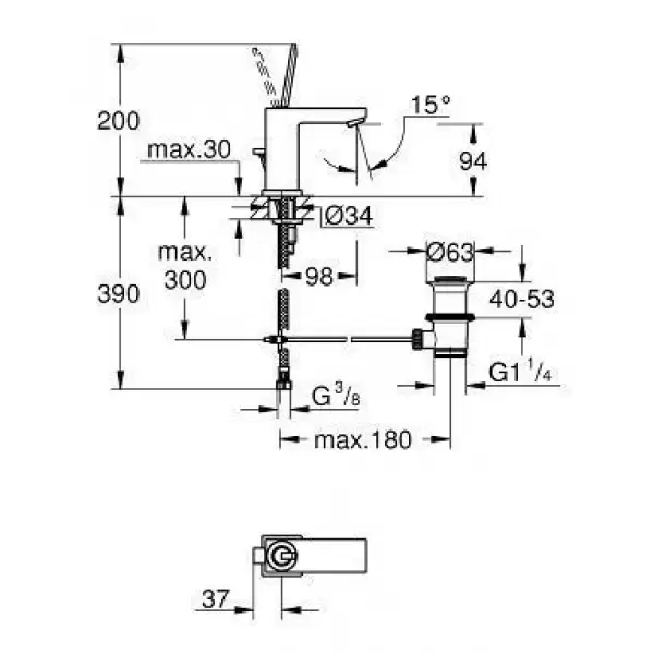Смеситель Eurocube Joy для раковины со сливным гарнитуром, размер S 23654000 GROHE.