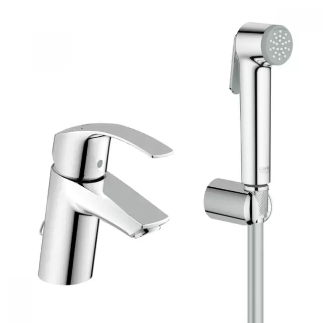 Купить Смеситель Eurosmart однорычажный для умывальника с цепочкой и гигиеническим душем и настенным 23124002 артикул: 117347 в интернет-магазине ESMAG - Челябинск.