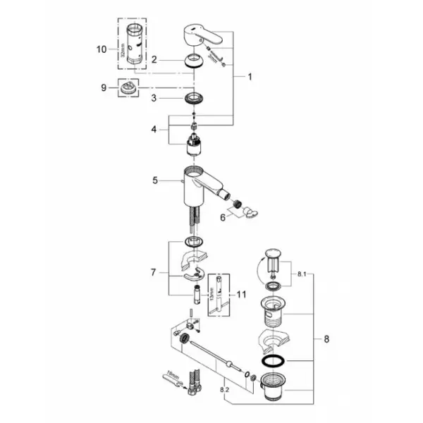 Смеситель Eurostyle Cosmopolitan для биде, сливной гарнитур 33565002 GROHE.