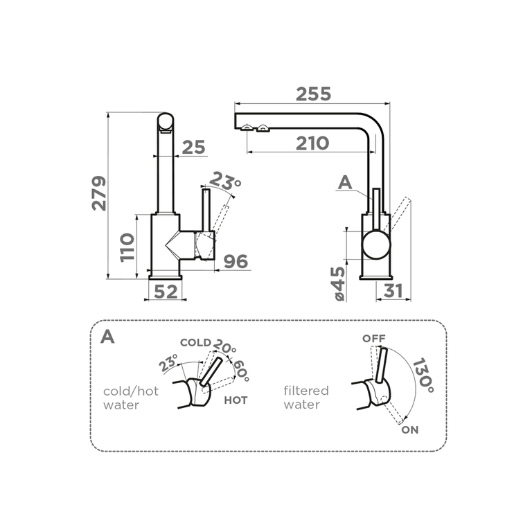 - Технология PURE LIFE®: подключение фильтра для очистки воды. Фильтрованная вода подается по отдельной трубке и не смешивается с водопроводной водой.