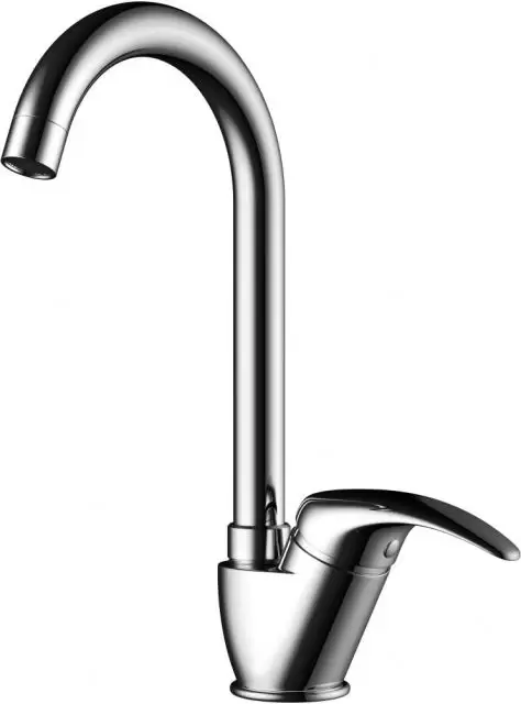 - Смеситель выполнен в современном стиле и снабжен высоким поворотным изливом.