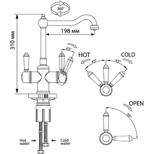 - Классический дизайн и удобство использования, благодаря высокому изливу;