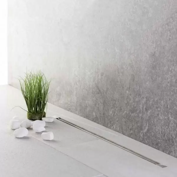 - три варианта дизайна трапа в ванной комнате за счет идущих в комплекте алюминиевых профилей-уголков: