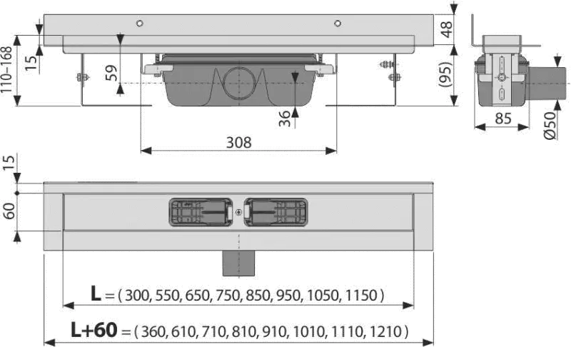 Купить Водоотводящий желоб APZ16-850 ALCAPLAST артикул: 166348 в интернет-магазине ESMAG - Челябинск.