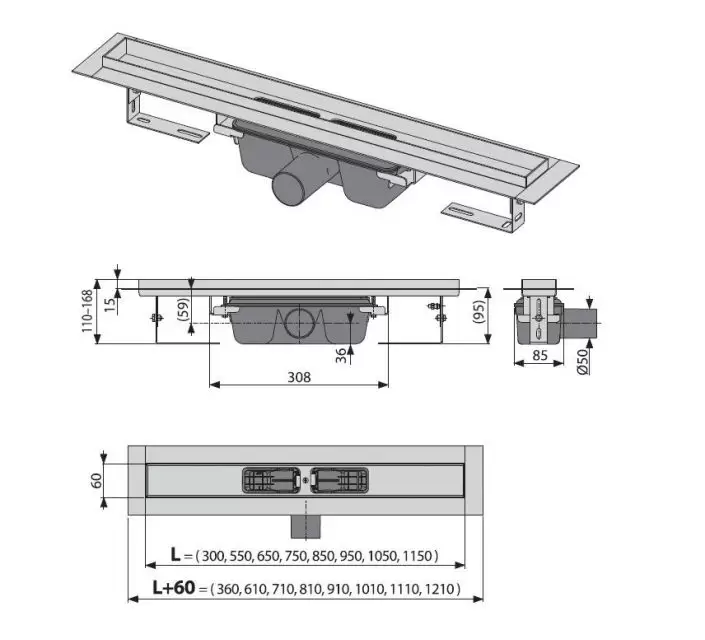 Купить Водоотводящий желоб с порогами для цельной решетки, с горизонтальным сливом APZ6-1150 ALCAPLAST артикул: 166350 в интернет-магазине ESMAG - Челябинск.