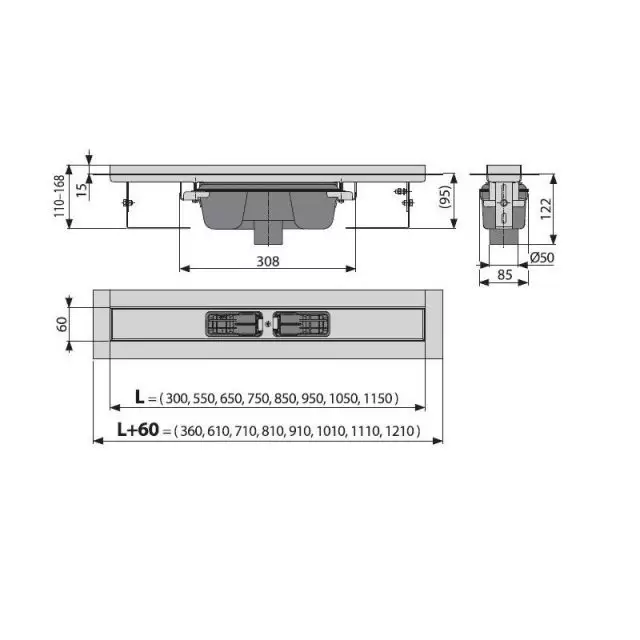 Водоотводящий желоб предназначен для установки цельной решетки. Нержавеющий порог желоба образует визуальный переход между краем желоба и вставленной решеткой. Вода втекает в желоб только между краями желоба и решетки. Желоб может быть установлен на открытом участке или к стене душевой поверхности.