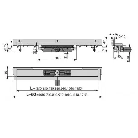 ВОДООТВОДЯЩИЙ ЖЕЛОБ С ПОРОГАМИ ДЛЯ ПЕРФОРИР. РЕШЕТКИ С РЕГУЛИРУЕМЫМ ВОРОТНИКОМ К СТЕНЕ (сталь) APZ10 в г.Челябинск