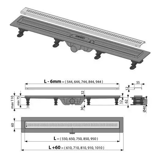 Купить Водоотводящий желоб с порогами для перфорированной решетки APZ18-550M ALCAPLAST артикул: 168415 в интернет-магазине ESMAG - Челябинск.