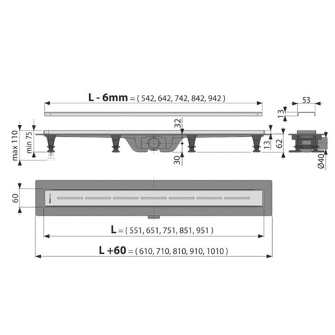 Купить Водоотводящий желоб с порогами для перфорированной решетки APZ18-750M артикул: 168417 в интернет-магазине ESMAG - Челябинск.