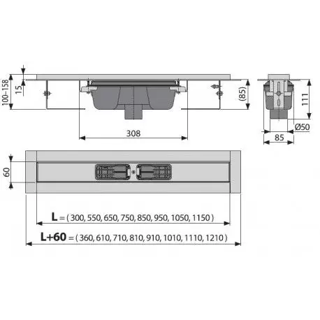 Водоотводящий желоб с порогами для перфорированной решетки, с вертикальным стоком APZ1001-1050 ALCAP в г.Челябинск