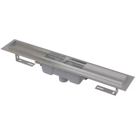 Водоотводящий желоб предназначенный для установки перфорированной решетки. Нержавеющий порог желоба формирует визуальный переход между плиткой и вставленной решеткой. Вода втекает в желоб через края и отверстия решетки. Желоб может быть установлен на открытом участке или к стене душевой поверхности.
