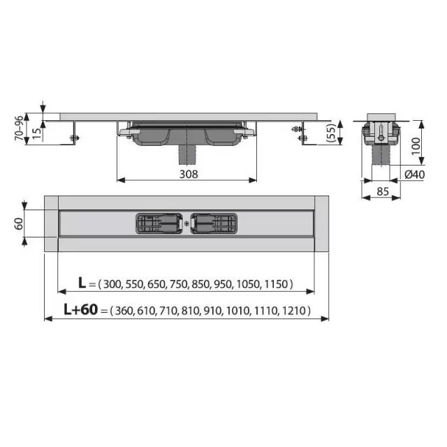 Купить Водоотводящий желоб с порогами для перфорированной решетки, с вертикальным стоком APZ1101-300 ALCAPLAST артикул: 166342 в интернет-магазине ESMAG - Челябинск.