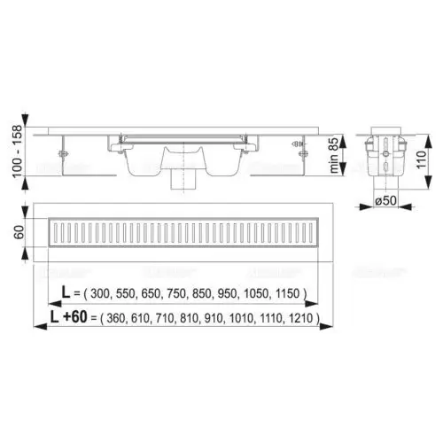 Купить Водоотводящий желоб с порогами для перфорированной решетки, с вертикальным стоком (сталь) APZ1001-55 артикул: 171589 в интернет-магазине ESMAG - Челябинск.